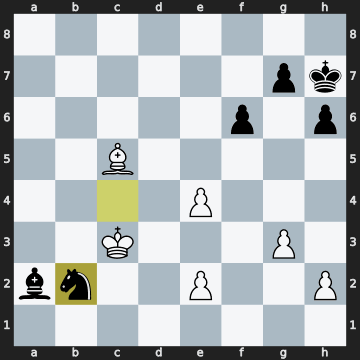 47. De4+ Dxe4 | 48. dxe4 b2 | 49. Tb1 La2 | 50. Txb2 Sc4+ | 51. Kc3 Sxb2